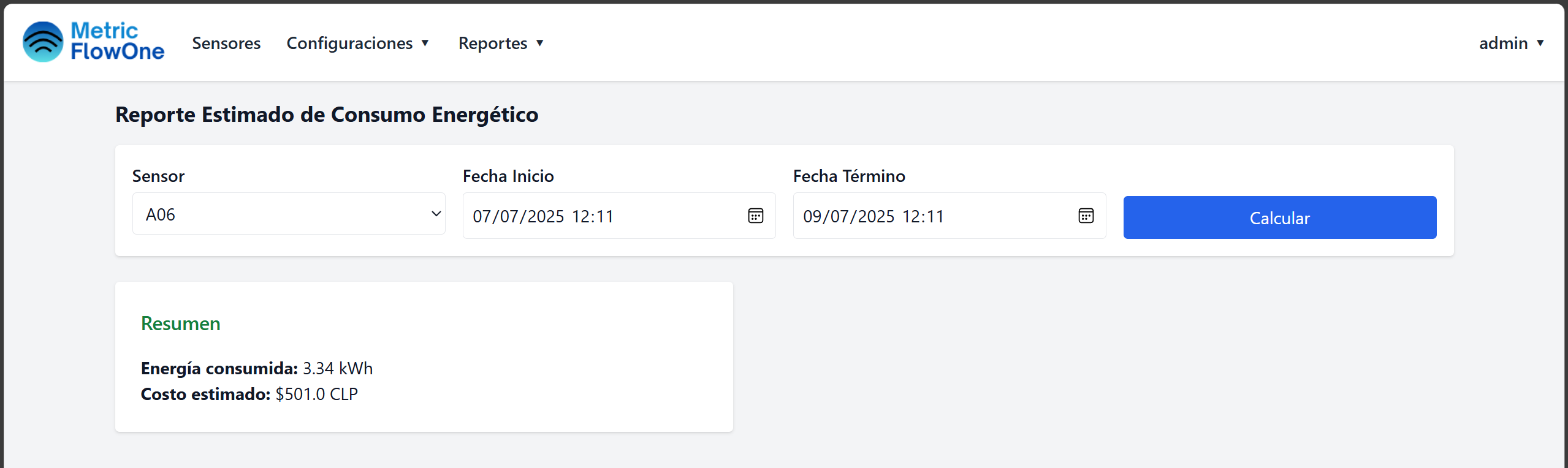 | Estimación de Consumo | Calcula kWh consumidos y costo estimado (CLP) en el período seleccionado. |